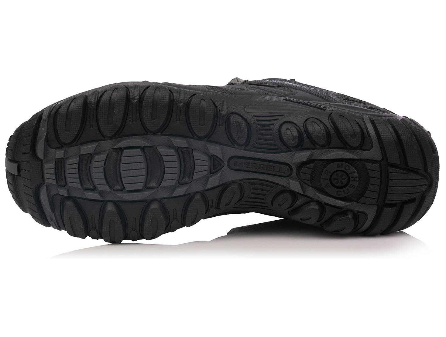 • Merrel Air Cushion® to opatentowana podeszwa amortyzująca wstrząsy i zwiększająca stabilność stopy. Jest wykorzystywana wyłącznie w obuwiu firmy Merrell. Air Cushion® zgniata się przy uderzeniu pięty a wchłonięcie energii odpowiada czterokrotnej wadze ciała. Dodatkowo Air Cushion® tworzy charakterystyczny zapiętek, który utrzymuje piętę w centralnej pozycji i tym samym stabilizuje stopę. Oferuje wygodę i amortyzację butów do biegania ze stabilnością i kontrolą potrzebną podczas turystyki.