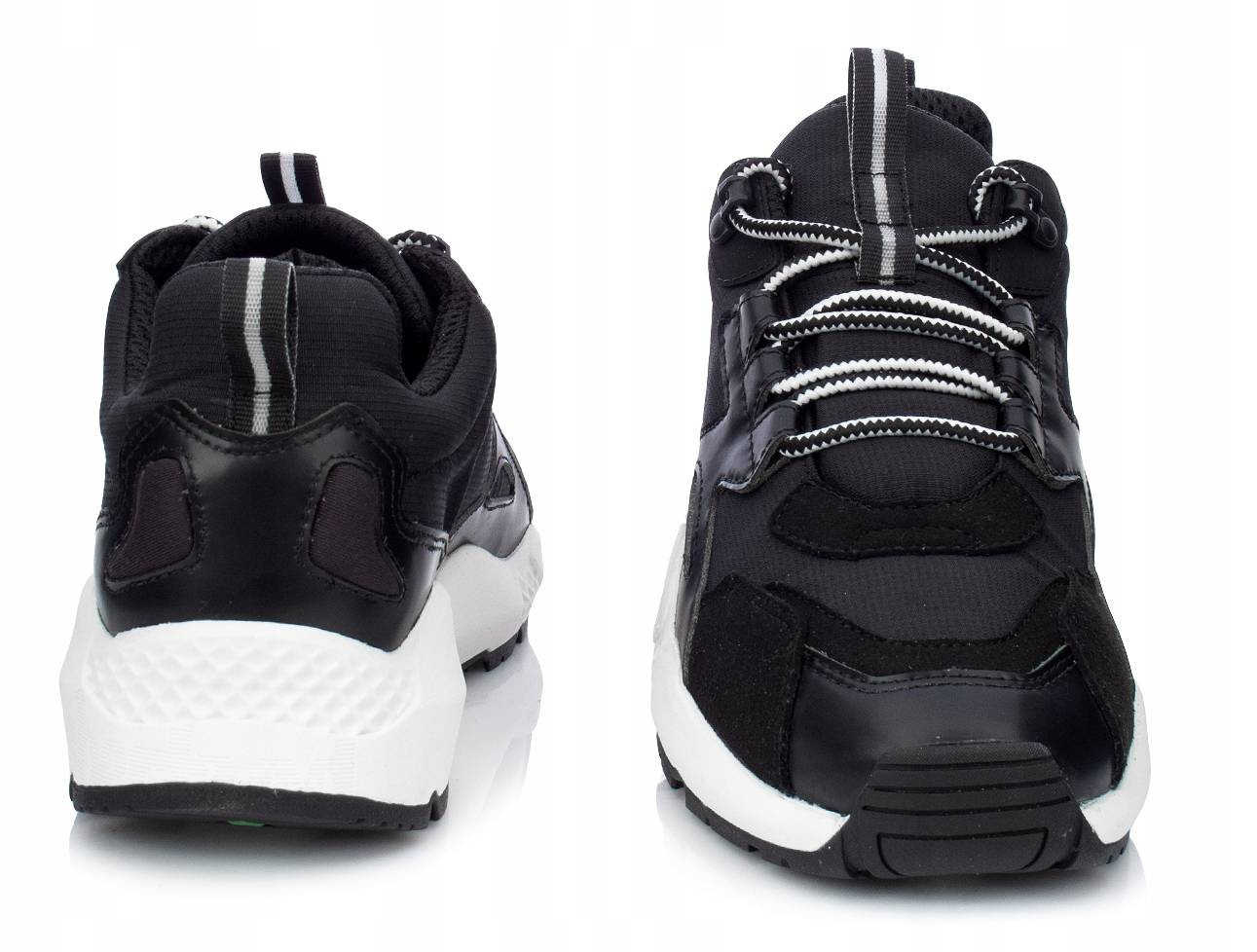 Ciekawa wizualnie cholewka i pogrubiona solidna podeszwa sprawiają, że buty prezentują się ciekawie i nietypowo