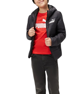 PUMA ESS HODDED 670559-01 kurtka dziecięca pikowana z kapturem wodoodporna czarna